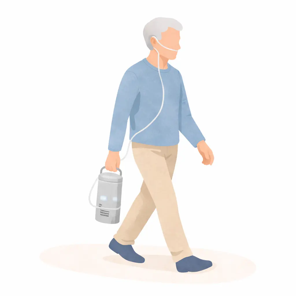 Die mobile Sauerstofftherapie unterstützt Sie unterwegs z. B. beim Einkaufen, bei Arztterminen oder auf kurzen Spaziergängen. Je nach Verordnung kommen tragbare Systeme mit Akku zum Einsatz, damit Sie nicht an einen festen Ort gebunden sind.