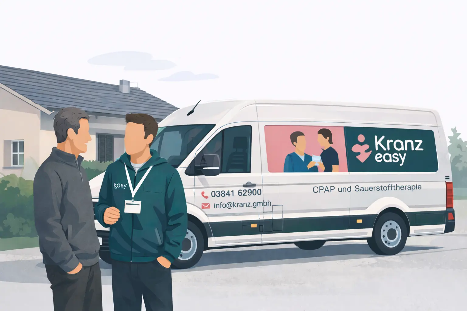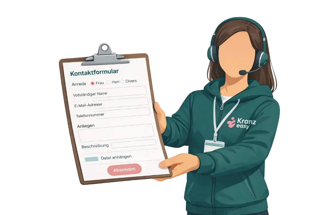 Kranz easy begleitet Sie von der ersten Frage bis zur sicheren Nutzung. Wir unterstützen bei Rezept, Unterlagen und dem Ablauf mit der Krankenkasse. Sie erhalten eine verständliche Einweisung, damit Gerät und Zubehör im Alltag sicher sitzen. Wenn sich etwas ändert, sind wir für Sie erreichbar.
